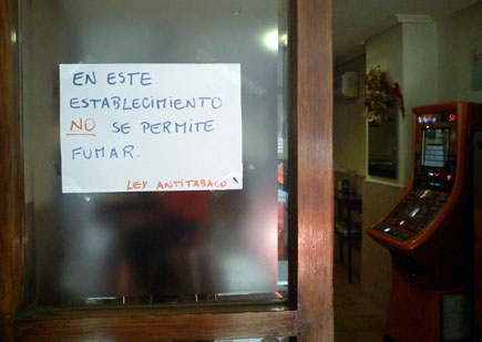 Desde el 2 de enero la nueva Ley prohíbe fumar en todos los espacios públicos cerrados. En hostelería se considera zona al aire libre, todo espacio no cubierto, o aquel que, aun estando cubierto, esté rodeado lateralmente por un máximo de dos paredes, muros o paramentos.